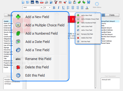 Add a New Field - Adds a standard field to your template. When a document is created with the template, the author will be prompted to provide text which will replace the field in the document.