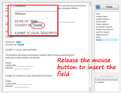 4. Release the mouse button to 'drop' the field into your text