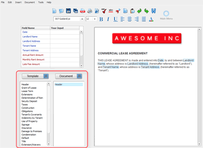 - Drag a section from the template to the document