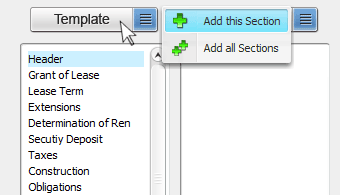 It is possible to add every section in a template to your document. There are three methods to perform this action: